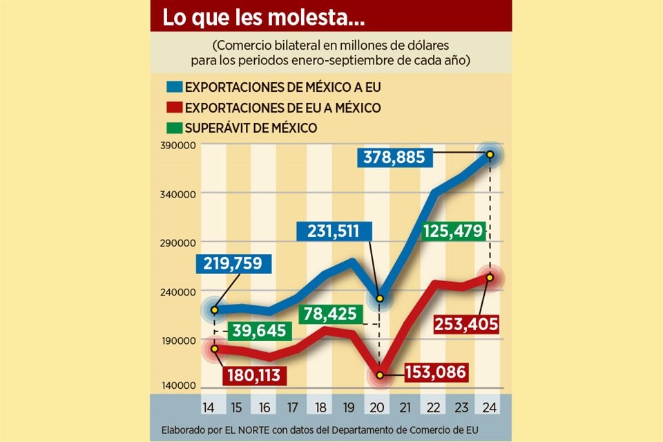 El Departamento de Comercio de EU reportó que en septiembre las exportaciones de México a su país aumentaron un 11.8% anual.