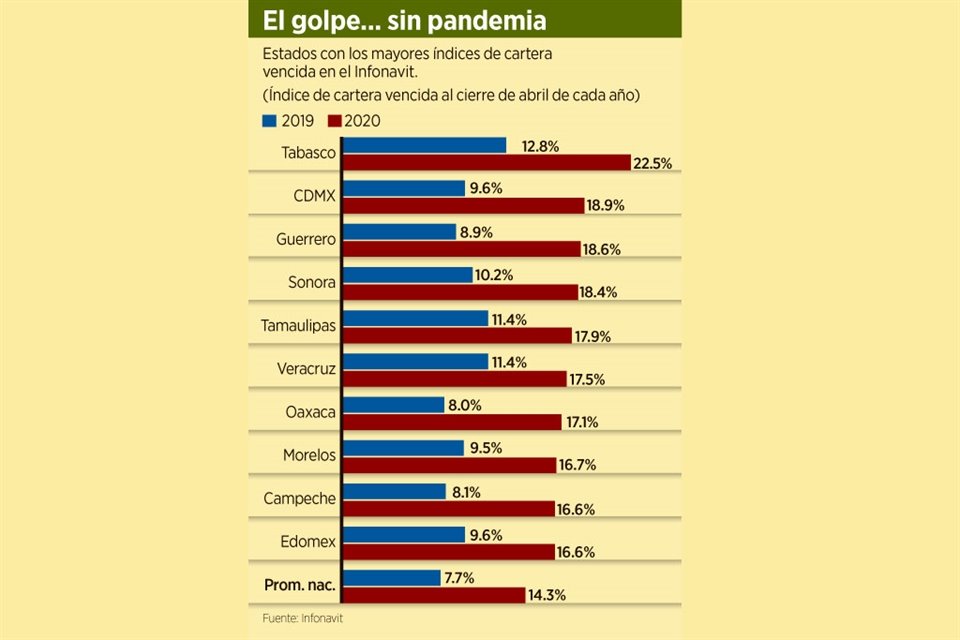 En 12 meses al Infonavit prácticamente se le duplicaron los problemas para recuperar los recursos de sus derechohabientes que canalizó a través de créditos para hipotecas y Standard & Poor's (S&P) advierte un mayor deterioro de esos activos.