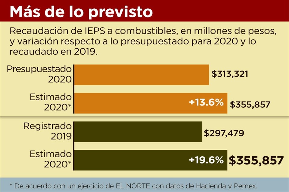 La baja en los precios de la gasolina permitiría a la Secretaría de Hacienda aumentar sus ingresos por concepto de recaudación del Impuesto Especial sobre Producción y Servicios (IEPS) a combustibles en aproximadamente 13.6 por ciento, debido a que podría sostener el cobro del gravamen en su nivel máximo permitido.