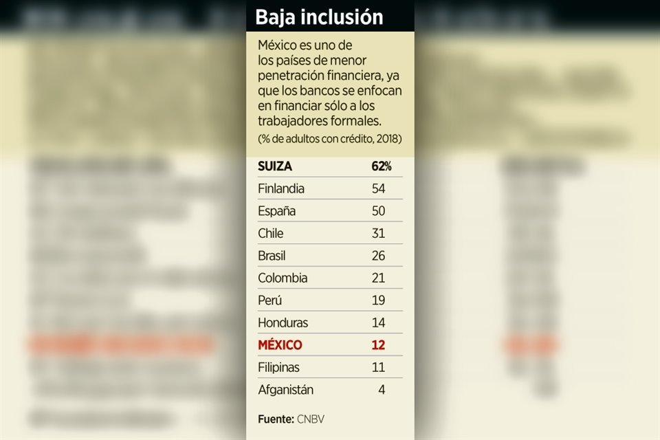 En México, sólo 12 por ciento de los adultos cuentan con algún crédito otorgado por una institución financiera regulada, según un comparativo internacional de la Comisión Nacional Bancaria y de Valores (CNBV).