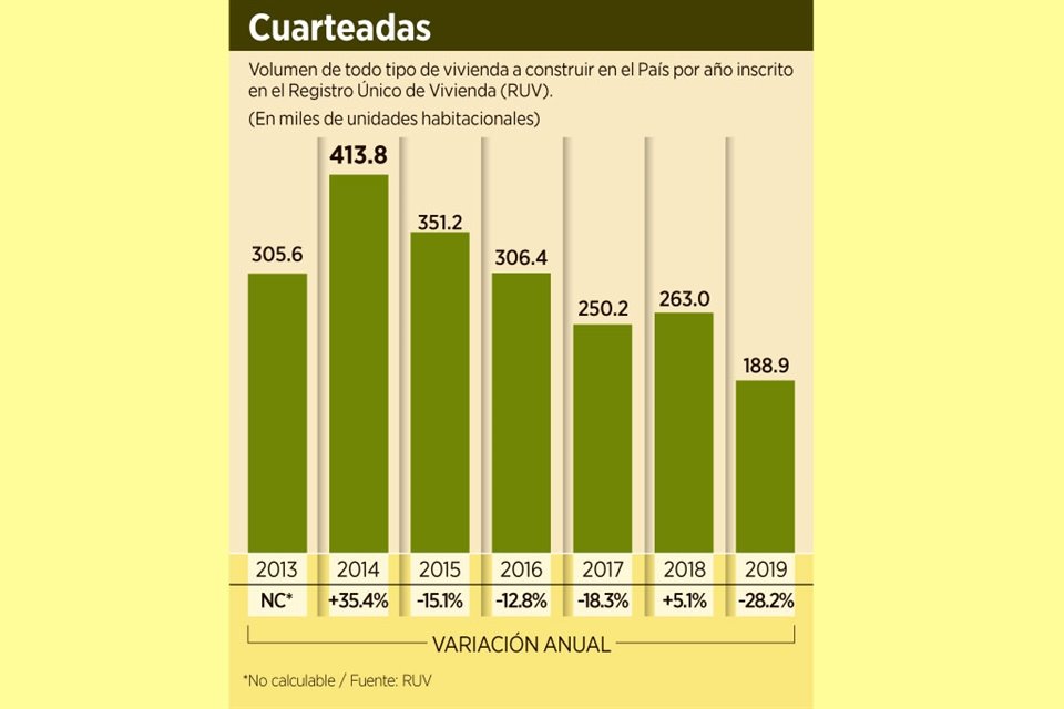 El número de proyectos para la construcción de viviendas nuevas en el País cerró el 2019 con una caída del 28.2 por ciento respecto al 2018, su peor registro desde que hay estadísticas, a partir del 2013.