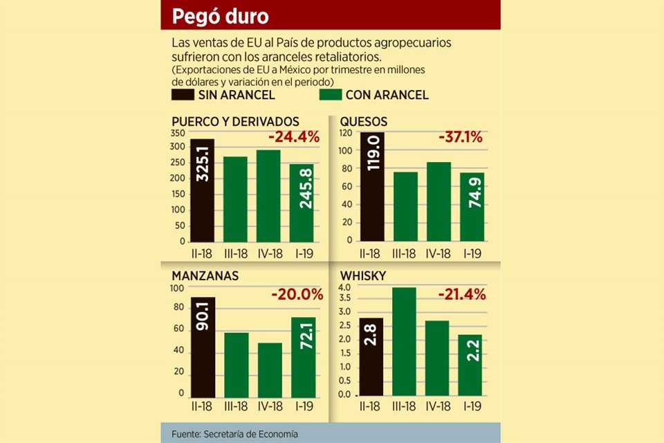México eliminó aranceles de hasta 25 por ciento a diferentes productos de Estados Unidos que impuso desde junio del 2018 en represalia a los impuestos al acero y aluminio que previamente aplicó ese país y que se dieron por terminados el viernes.