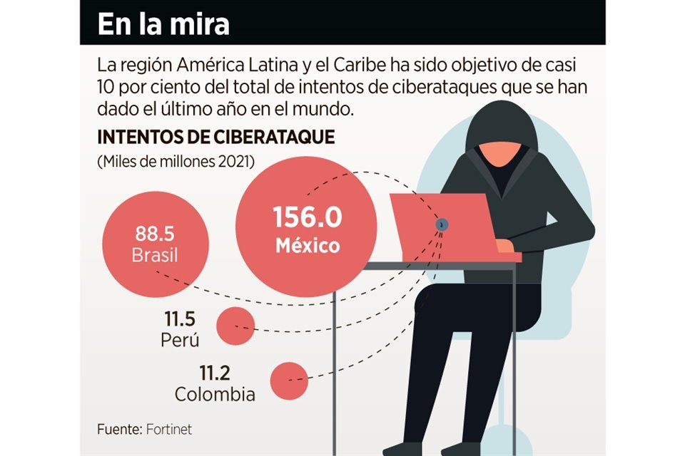 El País superó a Brasil como el principal destino de intentos de ciberataques en América Latina durante 2021, indican cifras de la firma de ciberseguridad Fortinet.
