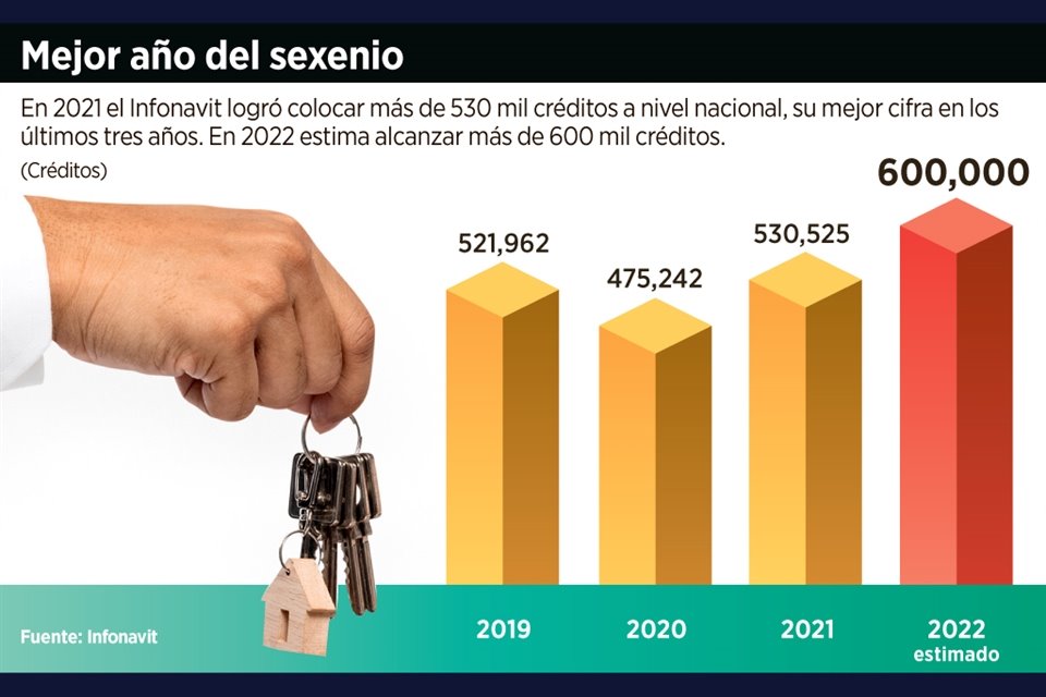 En 2021, el Instituto del Fondo Nacional de la Vivienda para los Trabajadores (Infonavit) otorgó 530 mil 525 créditos, cifra superior en 1.6 por ciento a lo que entregó en 2019, previo a la pandemia.
