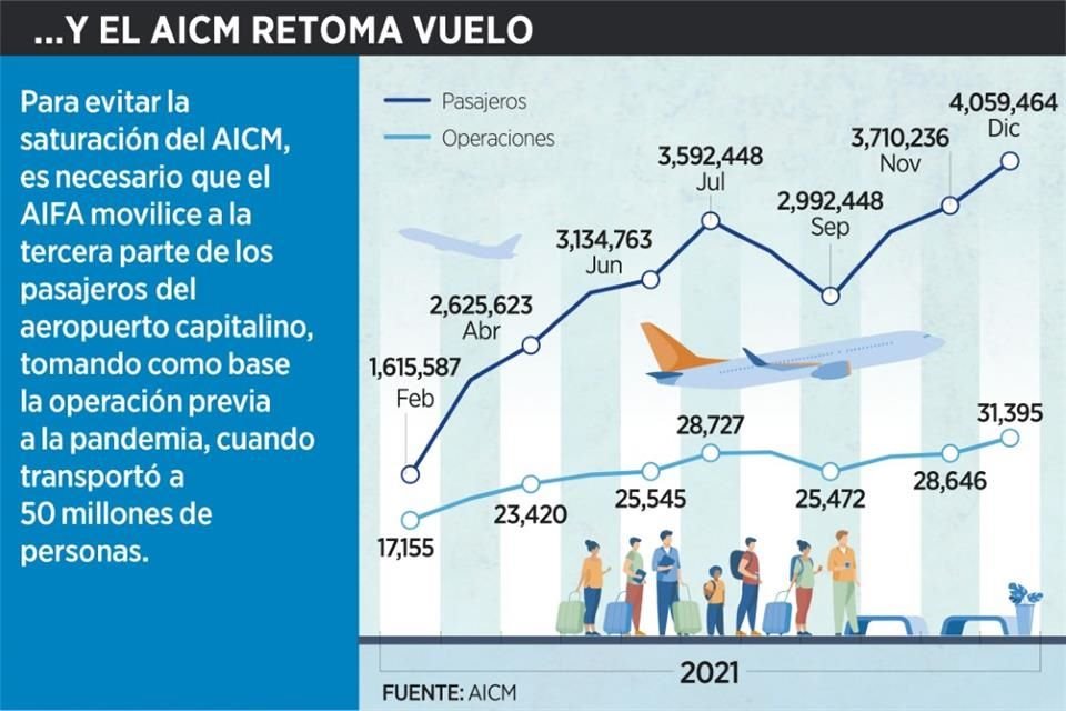 A partir del 21 de marzo, el AIFA iniciará operaciones con 12 vuelos diarios de tres aerolíneas, a diferencia del AICM que tiene 889 en un día.