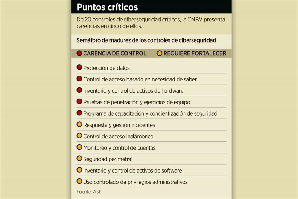 La Comisión Nacional Bancaria y de Valores (CNBV), responsable de regular, supervisar y sancionar entidades del sistema financiero, muestra debilidad en controles de ciberseguridad críticos.