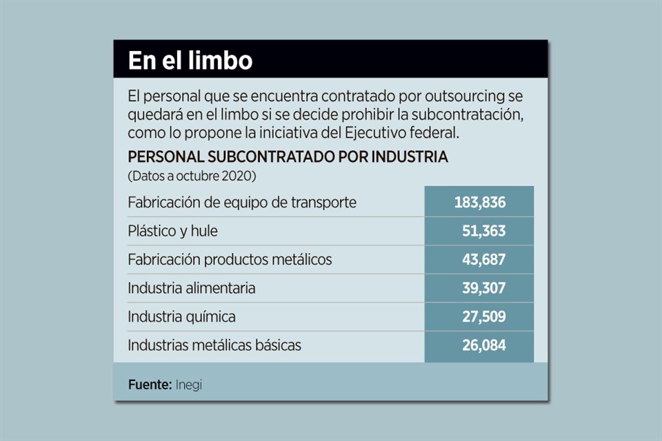 El 19.5 por ciento del personal de la Industria Manufacturera, Maquiladora y Servicios de Exportación (IMMEX) se encuentra contratado a través de outsourcing, lo cual corresponde a más de 525 mil empleados, de acuerdo con datos del Inegi a octubre del 2020.