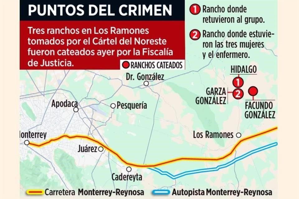 Los tres ranchos donde 10 personas estuvieron privadas de la libertad, en Los Ramones, presuntamente se los apropió el Cártel del Noreste para cometer sus actividades ilícitas.
