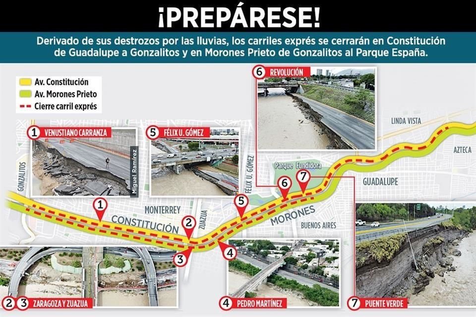 Conoce los ajustes a las vialidades tras el paso de la tormenta 'Alberto' en Monterrey y su área metropolitana.