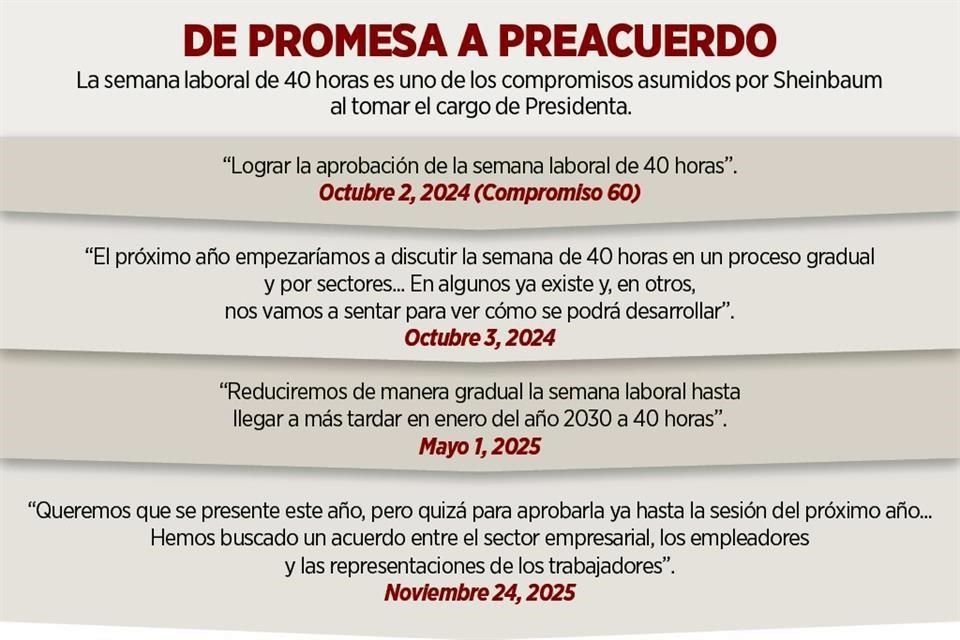El Gobierno federal y las cúpulas de la Iniciativa Privada lograron un principio de acuerdo para plasmar en la Constitución la semana laboral de 40 horas, que hoy podría anunciarse, de acuerdo con fuentes con conocimiento del tema.