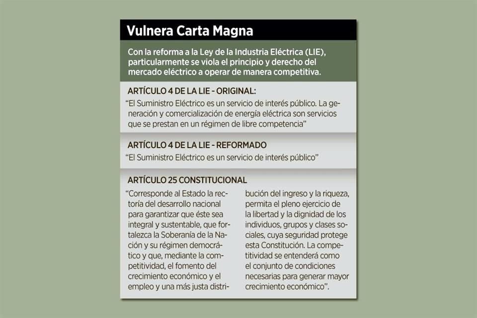 La reforma que pretende realizar el poder Ejecutivo a la Ley de la Industria Eléctrica (LIE) para beneficiar a la Comisión Federal de Electricidad (CFE) es inconstitucional porque afecta la libre competencia en perjuicio de los particulares, de acuerdo con especialistas.