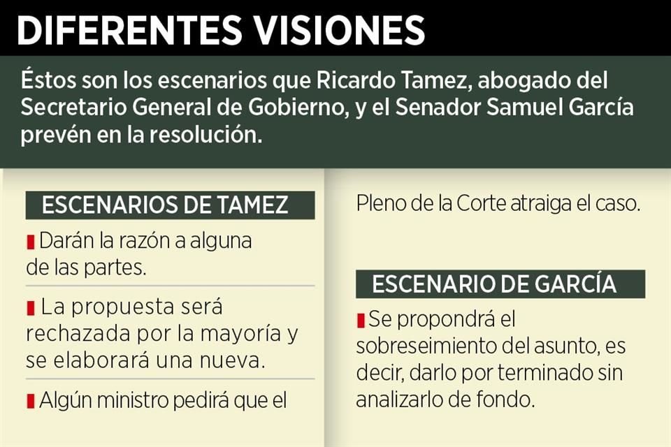 A nueve meses de haber recibido el caso, la Primera Sala de la Suprema Corte de Justicia de la Nación resolverá este 15 de julio la controversia constitucional con la que el Gobernador Jaime Rodríguez y el Secretario General de Gobierno, Manuel González, buscan frenar el proceso de sanción que les inició el Congreso local por el caso de las "broncofirmas".