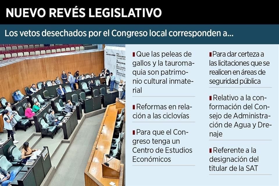 Con el argumento de que se presentaron en forma extemporánea, el Congreso local desechó, sin mayor trámite, cinco vetos a diversas leyes remitidos por el Gobernador Samuel García.